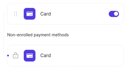 - Now you need to make the cards available for testing. Access Checkout builder on the Yuno Dashboard. Activate the toggle button for Card and publish the checkout using the Publish button.