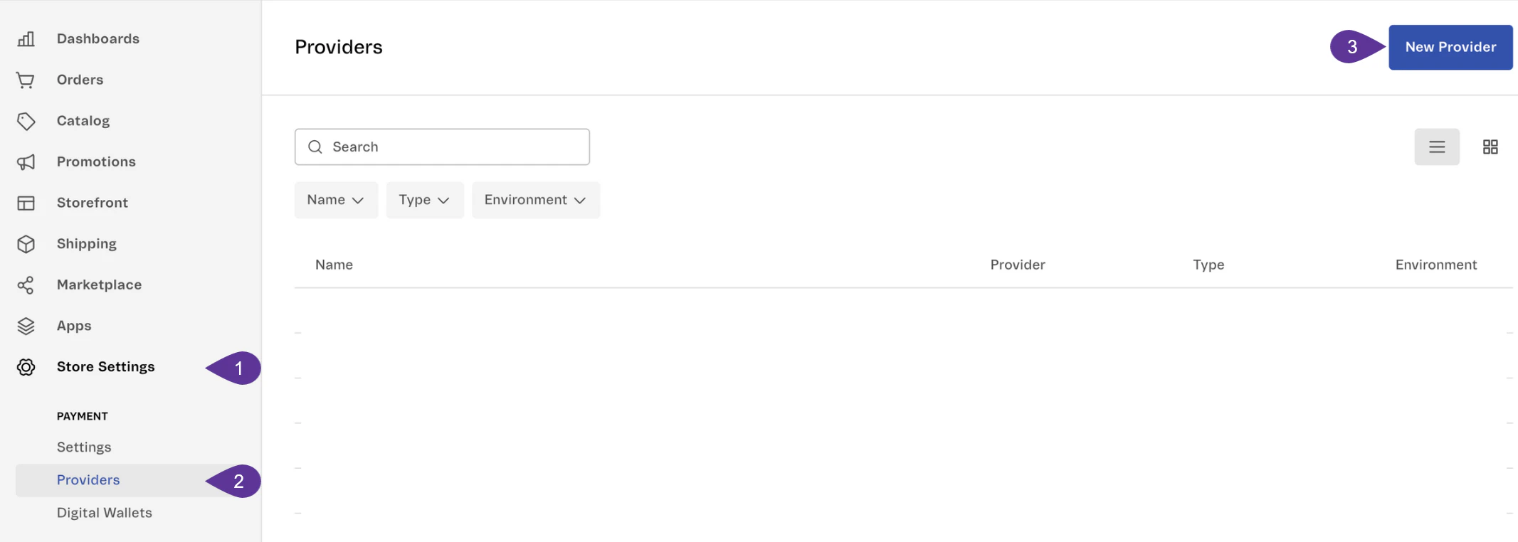 - In the VTEX Admin dashboard, navigate to Store Settings > Providers and click New Provider.