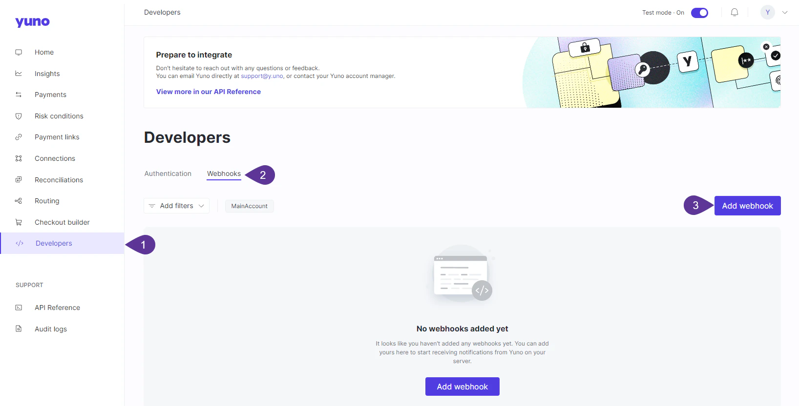 - As the last step, you have to configure the Webhook URL to receive the updates from the payments.