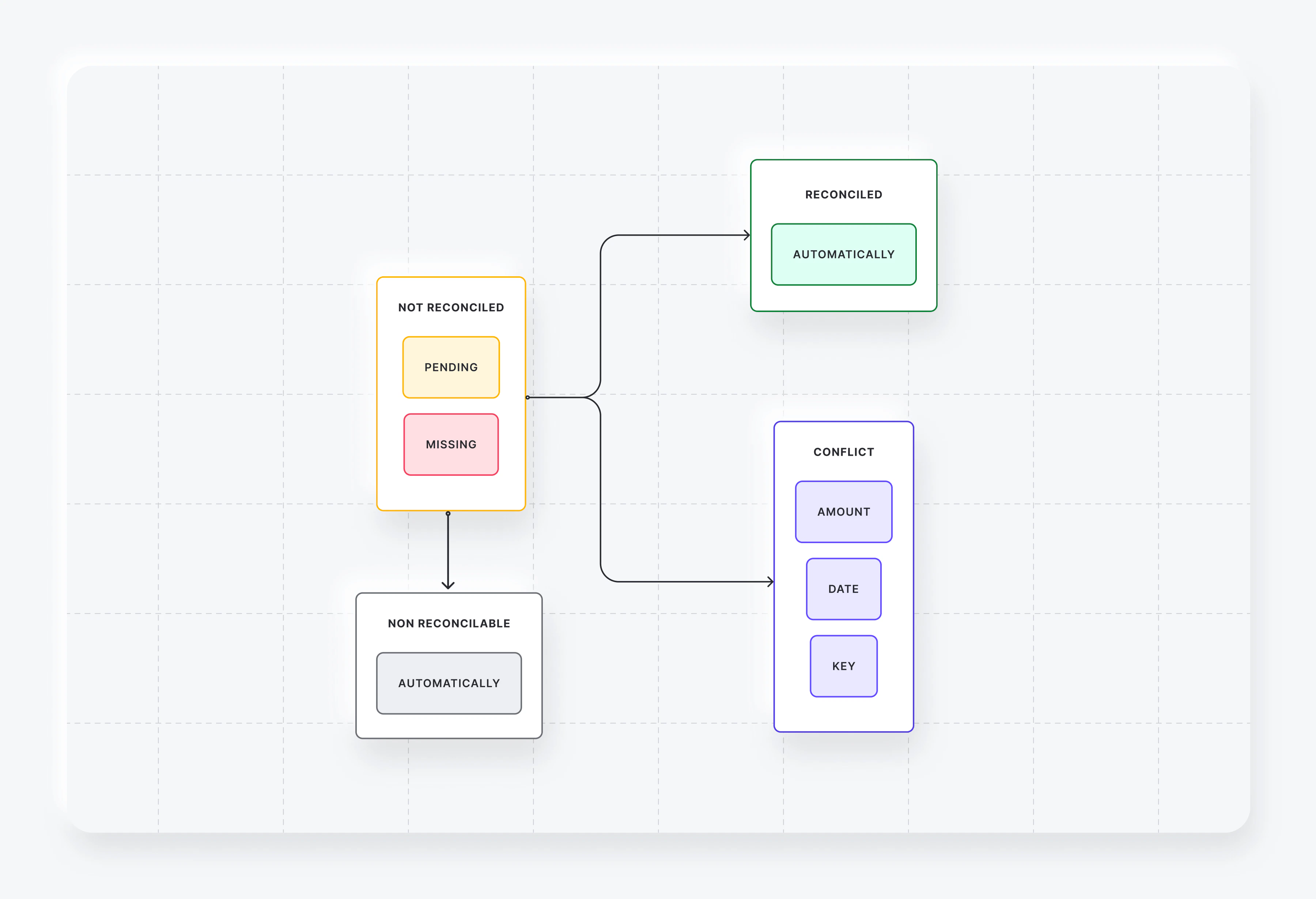 | Non reconcilable | The transaction cannot be reconciled as it doesn’t meet reconciliation criteria. No further action will be taken |