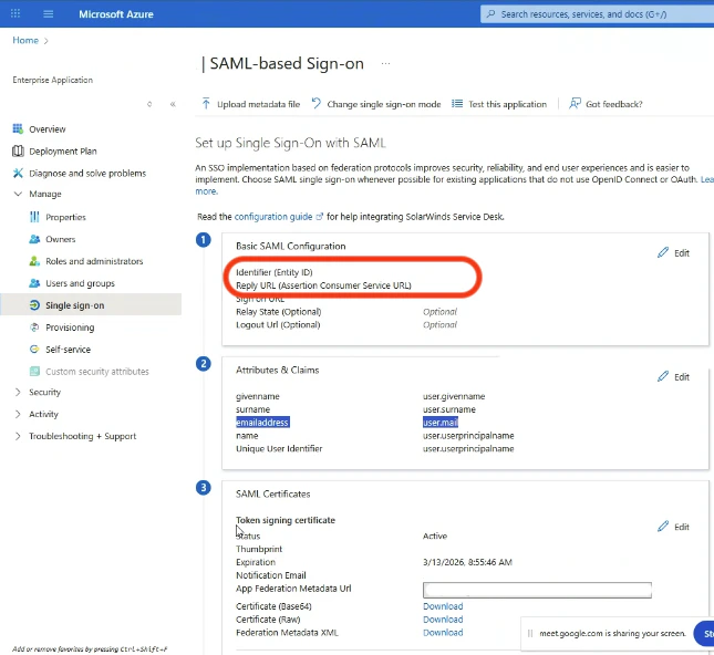 Configure the basic SAML settings