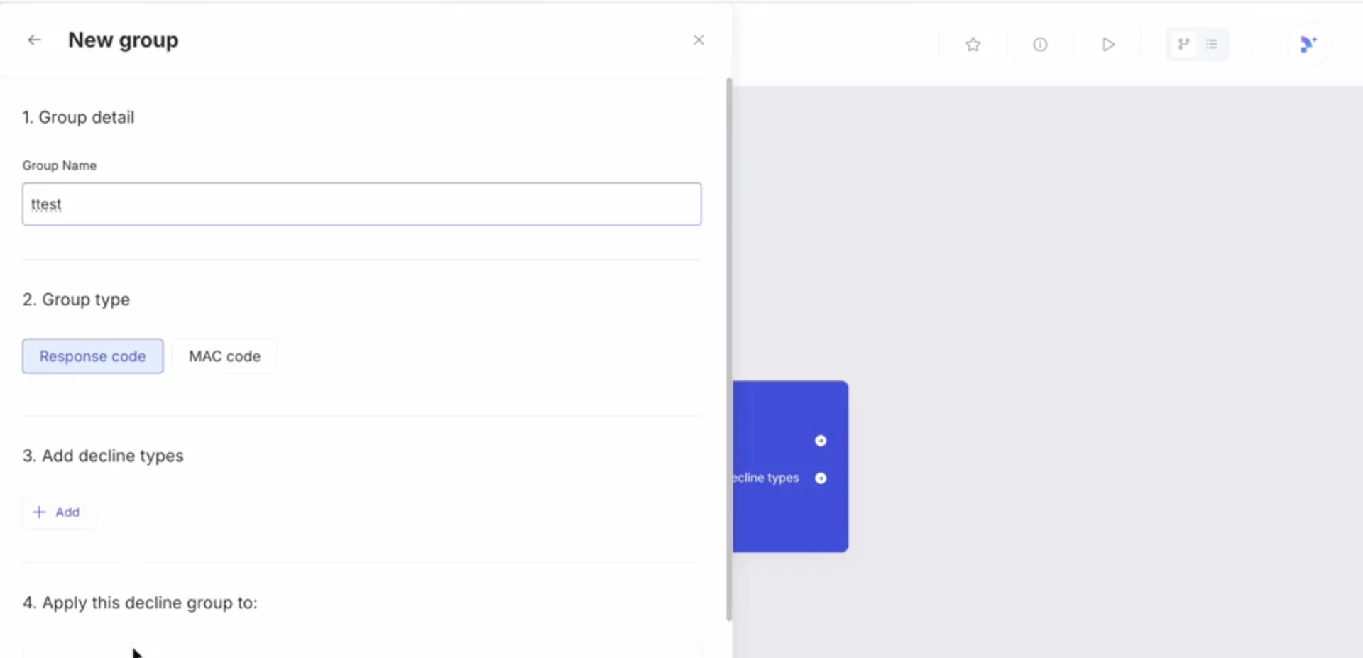 Retry behavior should be implemented via routing conditions. Update routes to include the new MAC conditions. When creating a decline group in the Yuno dashboard, you can choose to add conditions by Response Code or by MAC Code.
